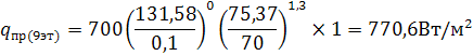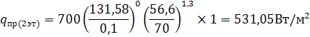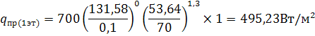 11.Определяем удельную плотность теплового потока отопительного прибора.