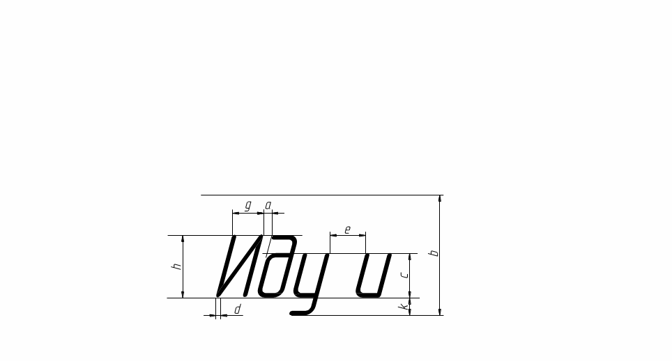 h, или по отношению к толщине линии шрифта d, например, g = 6d.