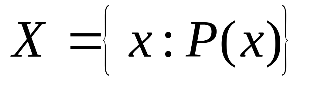 обозначает множество Х, состоящее из таких элементов х, для которых высказывание Р(х) истинно.