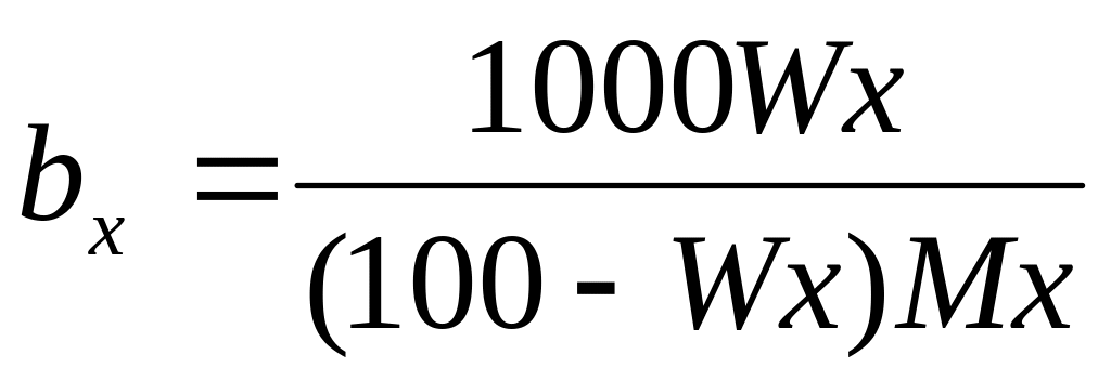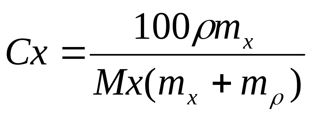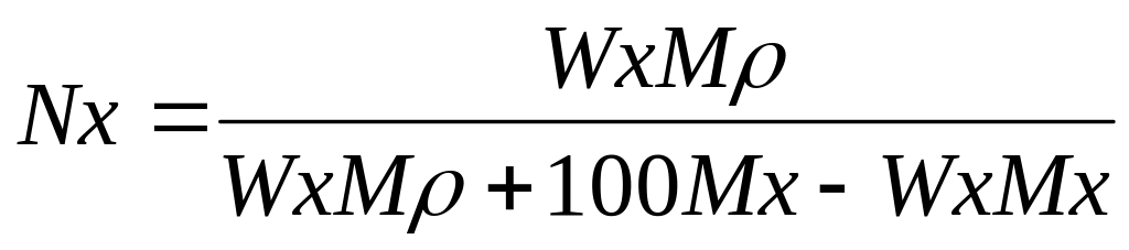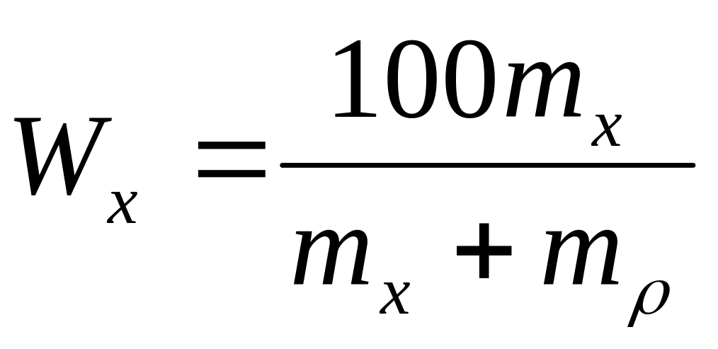 за відомою масовою долею Wx розчиненого компоненту (х):