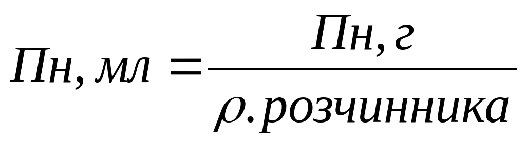 Переводимо величину Пн з одиниць маси в одиниці об’му, тобто з грамів у мл. Біля цього користуємося формулою: