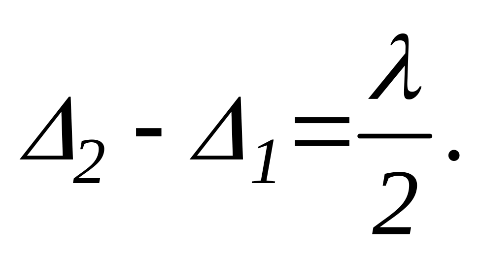 ми, почали спостерігатись інтерференційні мінімуми. Таке зміщення інтерференційної картини можливе при зміні оптичної різниці ходу пучків світлових хвиль на непарну кількість половин довжин хвиль, тобто