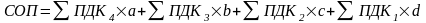Для того, чтобы рассмотреть 4-ый вариант загрязнения территории города необходимо ввести понятие суммарного оценочного показателя- сокращенно СОП, Суммарный оценочный показатель позволяет суммировать различные ингредиенты различной степени концентрации, которые выбрасывают различные источники. При суммировании учитываются классы опасности ингредиентов, их 4 - 1,2,3,4. Значения классов опасности приводятся в таблице основных загрязняющих веществ. Вводится также понятие коэффициентов контрастности ингредиентов. Их тоже 4(а=1,b = 2, с = 3, d = 4).
