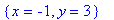 piecewise(3*x+2*y=3,``,x-y=-4,``);