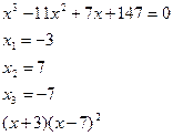 solve(x^3-11*x^2 + 7*x + 147=0,x);