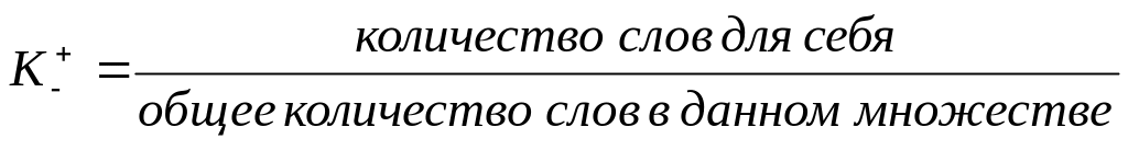 В каждом из двух множеств отдельно подсчитывается количество слов, которые испытуемый отметил для себя. Это число делится на общее количество слов, входящих в данный ряд. Таким образом вычисляются коэффициенты СО личности по положительным и отрицательным множествам: