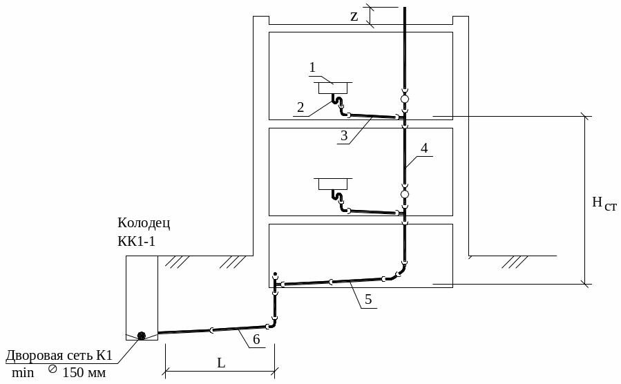 2. Опишите конструирование сети бытовой канализации и укажите её элементы (см. рис.1)
