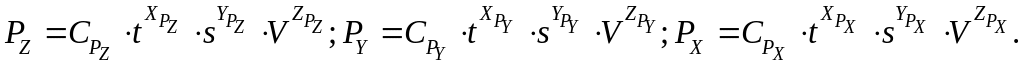 де СРz, СРy, СРx – усталені коефіцієнти, які залежать від умов обробки;