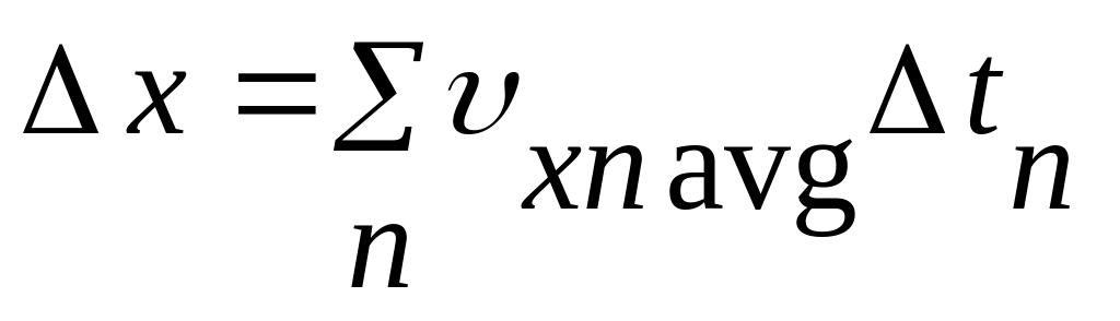 Suppose the υx–t graph for a particle moving along the x axis is as shown in Figure 1. Let us divide the time interval tf - ti into many small intervals, each of duration Δtn. From the definition of average velocity, we see that the displacement of the particle during any small interval, such as the one shaded in Figure 1, is given by Δxn = υxn,avg Δtn, where υxn,avg is the average velocity in that interval. Therefore, the displacement during this small interval is simply the area of the shaded rectangle in Figure 1 The total displacement for the interval tf – ti is the sum of the areas of all the rectangles from ti to tf :