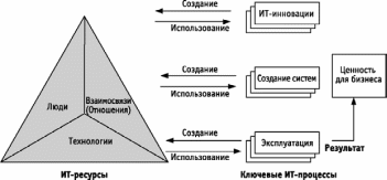 Как показано на рисунке 1.14, эти три ресурса одновременно создаются и используются за счет реализации трех ключевых ИТ-процессов: