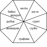 Мультимедиа - графика, гипермәтiн, дыбыс, анимация, бейнемәлiметтердi пайдалануға мүмкiндiк туғызатын аппаратты-бағдарламалық құрал (И.Вернер).