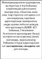 - •Аудандық сот заңмен белгiленген тәртiппен тағайындалатын төрағадан және судьялардан тұрады.