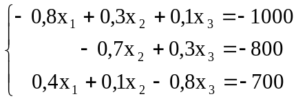 то есть конечный продукт, полученный первой производящей отраслью y1 = 1000 ед., второй – y2 = 800 ед., третьей – y3 = 700 ед.
