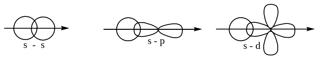 3) эти области перекрывания лежат над и под линией, соединяющей ядра.