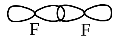 В молекуле одна общая электронная пара и кратность связи = 1. Характер перекрывания валентных орбиталей в молекуле будет следующий: