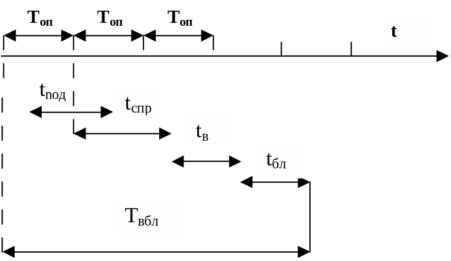 Якщо позначимо суму (Tоп+tспр+tв+tбл) через Твбл, одержимо співвідношення: