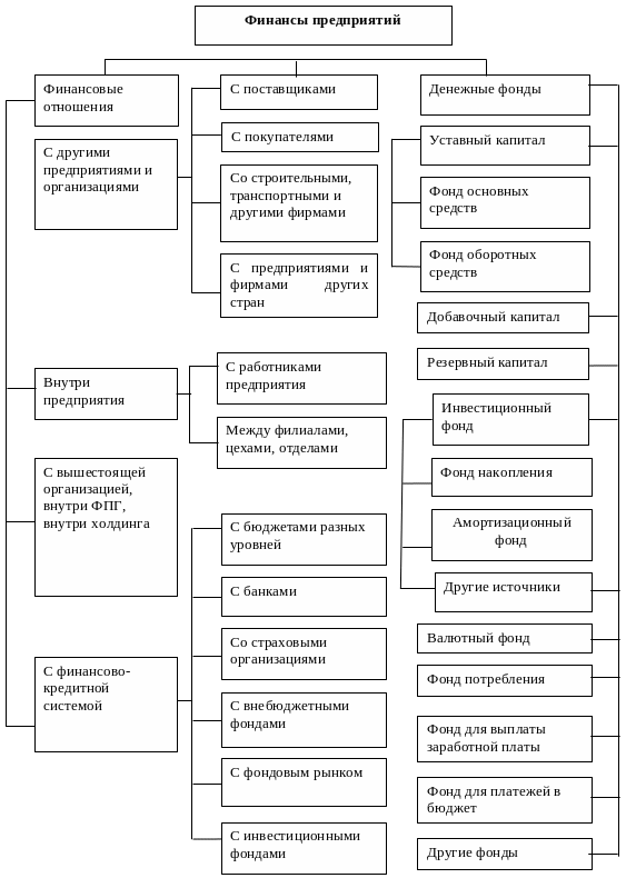 – между предприятием и его подразделениями: филиалами, цехами, отделами в процессе финансирования расходов, распределения и перераспределения прибыли, оборотных средств (влияют на организацию и ритмичность производства);
