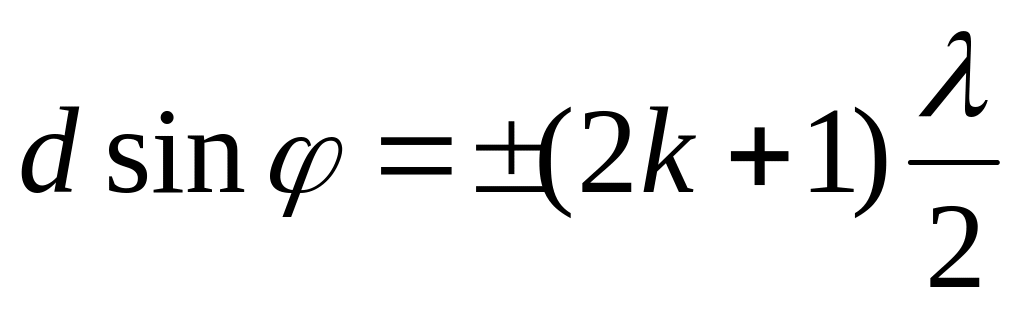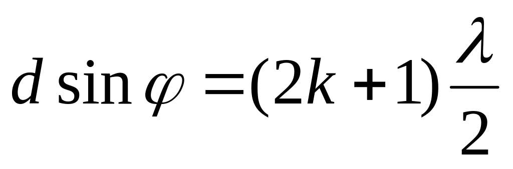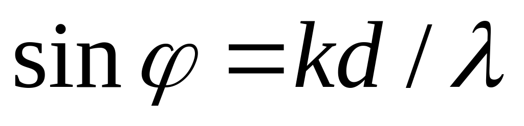 683 Какая из приведённых формул выражает условие дифракционного максимума при прохождении лучей через дифракционную решётку (d=a+b-постоянная решётки).