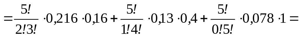 Вероятность попадания стрелка равна 0,6. Какова вероятность того, что при 4 выстрелах он поразит мишень не менее 2-х раз?