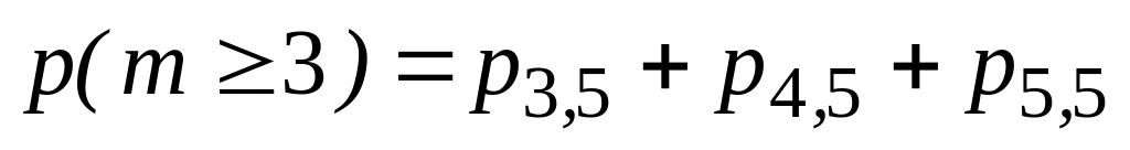 Условие поразить мишень не менее 3-х раз представляет собой сложное событие, при котором количество попаданий может быть 3, 4 или 5. Значит, вероятность такого события равна