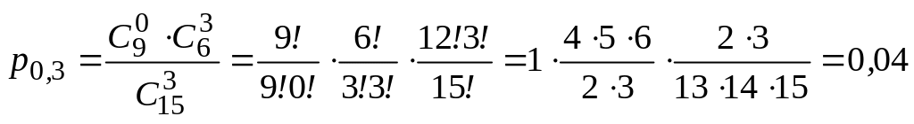 В урне находится 15 белых шаров и 5 черных. Найти кривую распределения для вероятности количества белых, если производится безвозвратная выборка из трех шаров. Найти среднее ожидаемое значение и среднеквадратичное отклонение.