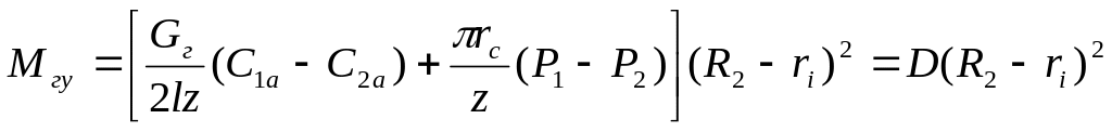 где l - длина лопатки; z - число лопаток; Gг - секундный массовый расход; rс - средний радиус лопатки; ri- радиус рассматриваемого i-го сечения лопатки.
