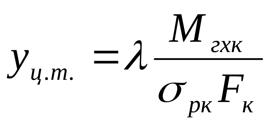 Значения величин σр к, Fк и ΔVi, берутся из табл. 1.1. rц.т = 61,4 см. Затем определяют расстояние от корневого сечения до центра тяжести пера лопатки: