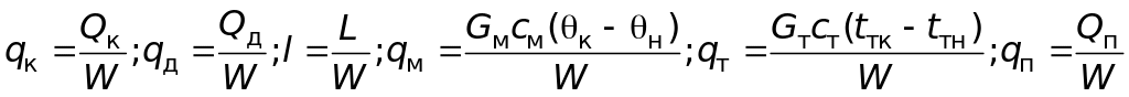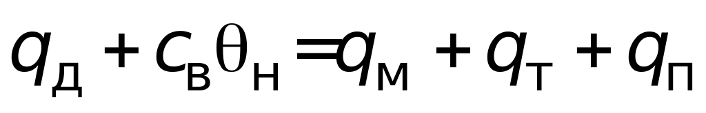 Влажный материал, поступающий на сушку, будем представлять как сумму высушенного материала Gм и испаренной влаги W. С учетом принятых обозначений запишем уравнение теплового баланса контактной сушки: