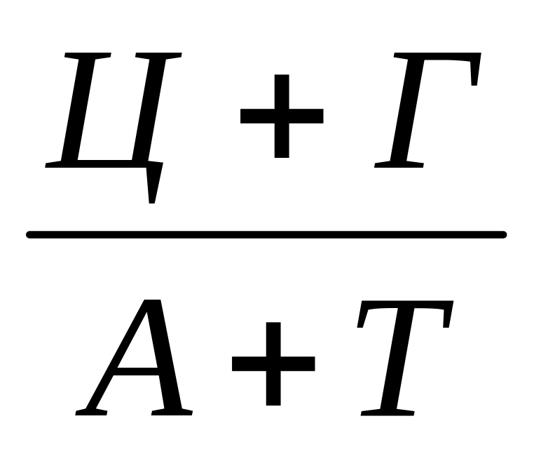 Количество аденина и цитозина равно количеству гуанина и тимина: А+Ц = Г+Т.