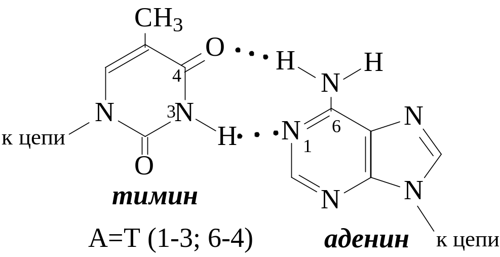 Молярное содержание аденина равно молярному содержанию тимина: А = Т.