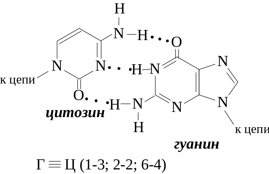 Молярное содержание гуанина равно молярному содержанию цитозина: Г = Ц.