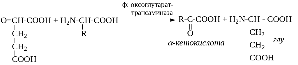 По современным представлениям другие аминокислоты дезаминируются в результате переаминирования -кетоглутаровой кислоты: