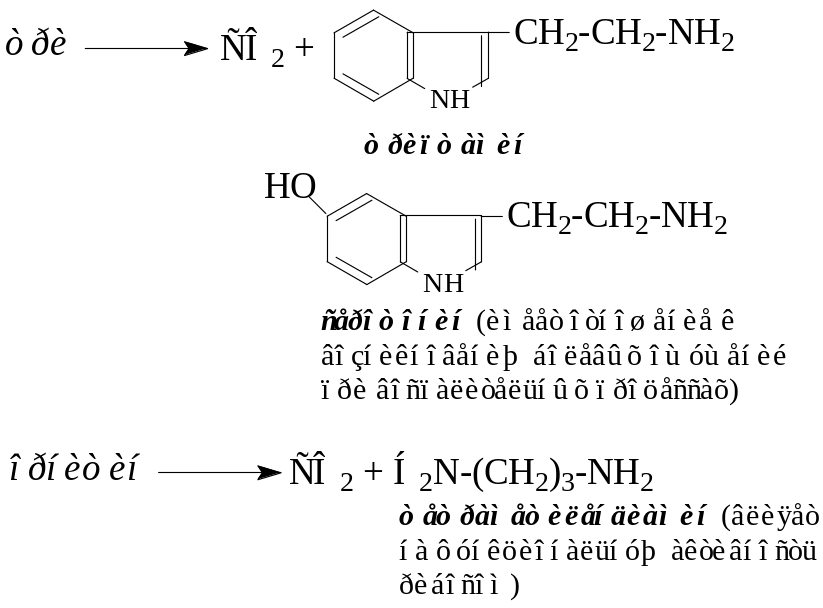 В результате распада аминокислот возникают амины, кетокислоты и другие органические соединения, которые претерпевают дальнейшие превращения до СО2 и Н2О.