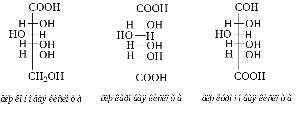 Производные глюкозы. Глюкоза при окислении дает сахарные кислоты. В зависимости от того, при каком атоме углерода (1-м или 6-м) происходит окисление функциональных групп (альдегидной или спиртовой), образуются три кислоты: глюконовая, глюкаровая (сахарная) или глюкуроновая. Глюконовая кислота в виде соли кальция применяется в медицине как общеукрепляющее средство (глюконат кальция). Глюкуроновая кислота является составной частью многих полисахаридов (например, гепарина и гиалуроновой кислоты, см. с. 116).
