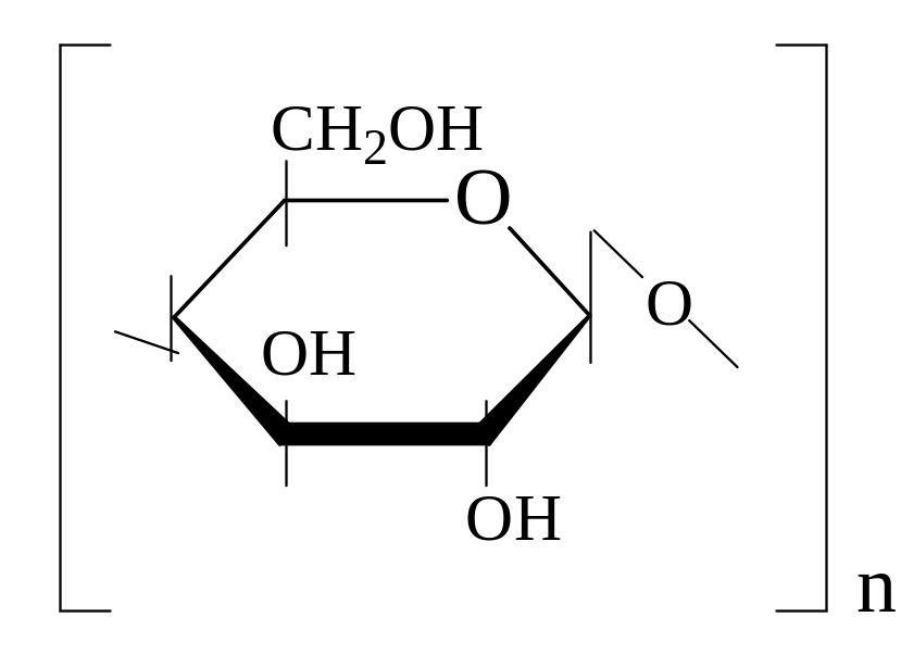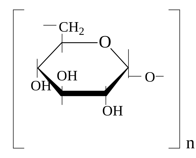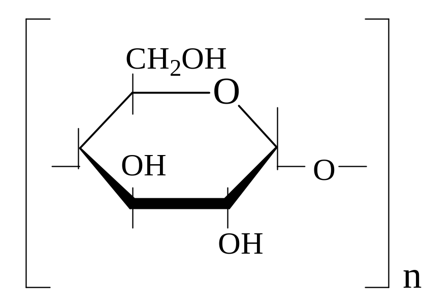 Целлюлоза (клетчатка). Мономер - -глюкоза, 14-гликозидная связь. Древесина ~ на 50 % состоит из целлюлозы, хлопок – 100 %. Молекулы обычно линейны, между ними имеются водородные связи (образуют микрофибриллы). Растворяется в аммиачных растворах солей меди, нерастворима в воде. Mr = 3 . 105 2 . 106 а.е.м.