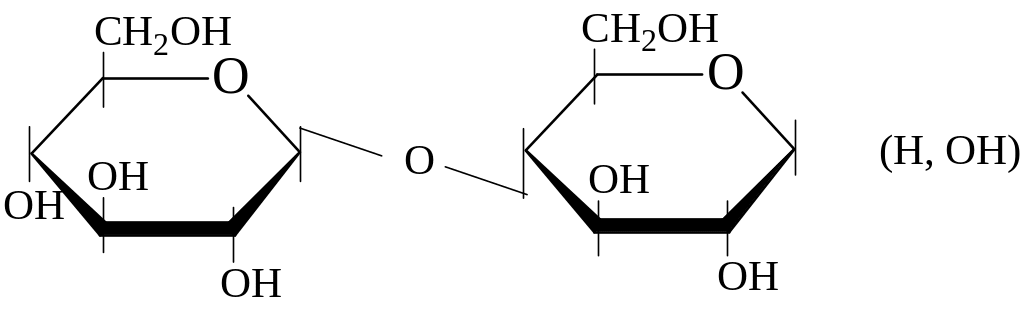 Мальтоза (солодовый сахар) – дисахарид, состоящий из -глюкоз, связанных 14-гликозидной связью. Образуется при гидролизе крахмала под действием амилазы. В природе встречается и -мальтоза.