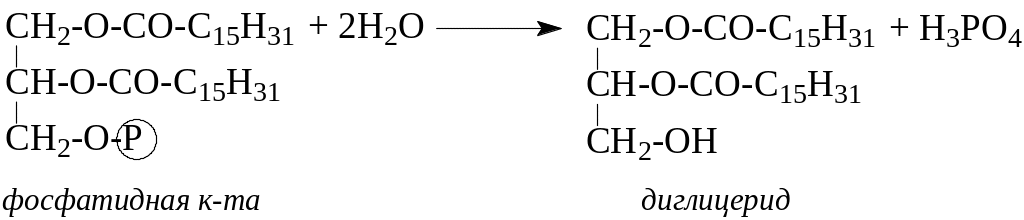 Синтез фосфолипидов: не обратный гидролиз. Начало, как в синтезе жиров (см. выше) – до образования фосфатидной кислоты и диглицерида. Затем: