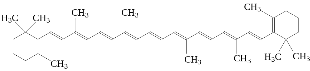 В этой формуле -каротина содержится восемь изопреновых звеньев.
