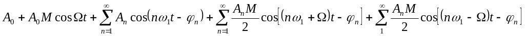 мұнда M =U/Uт – импульстердің модуляция (тереңдігі) коэффициенті. Фурье қатарын пайдалана отырып қарапайым түрлендірулерден кейін АИМ сигналы өрнегін жазамыз: