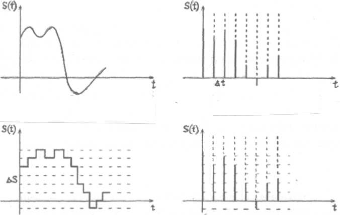 uT(t) – дискреттік сигналдың қарапайым математикалық моделі – уақыт өсіндегі нүктелер тізбегі, олардың әрқайсысында сәйкесті үзіліссіз сигнал мәндері берілген (2.2,ә-сурет).