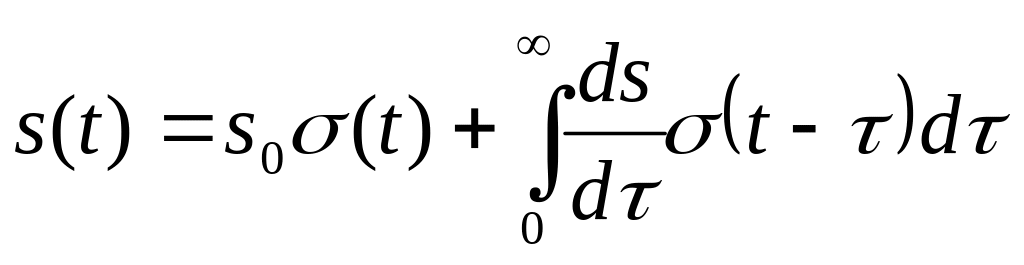 (s1 – sk-1) дифференциалдарға ds = (ds/dt)dt айналады да, біз еркін сигналдың Хевисайд функциясымен бейнеленуін аламыз: