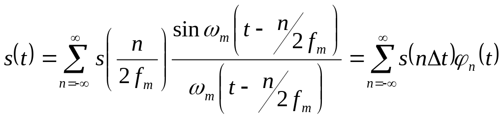 Cонымен осы теоремаға сәйкес спектрі бойынша ең жоғары жиілікпенен m = 2 fm шектелген s(t) сигналын катар түрінде көрсетуге болады: