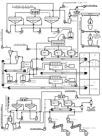 Схема цепи аппаратов фильтрации и сушки концентратов