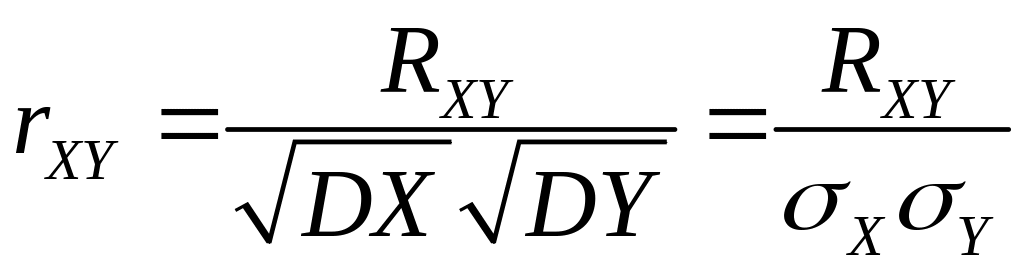 Значение корреляционного момента зависит от единиц измерения СВ и . Безразмерным аналогом является коэффициент корреляции, определяемый формулой: