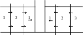 Рис.4.5. Модель Полларда. 1- область трещин в ПЗП., 2- область трещиновато – пористого коллектора, 3- матрица, поровый коллектор.