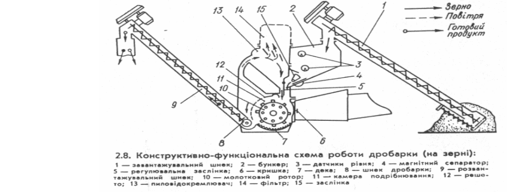 Рис.2. Конструктивно-функціональна схема роботи дробарки (на зерні):