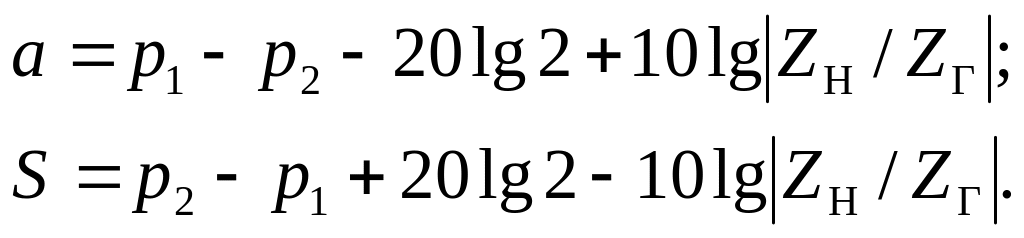 a = р0 − р2 , S = р2 − р0 , дБ (Нп).