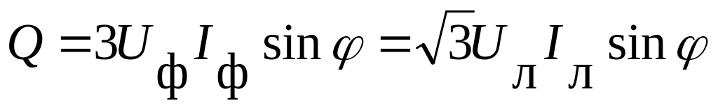 Активну і реактивну потужності трифазної системи при симетричному навантаженні незалежно від схеми з'єднання приймачів виражають через фазні або лінійні величини: