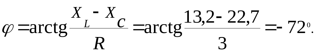 Приклад 3. До нерозгалуженого електричного кола, що складається з резистора R, індуктивного елемента L, активний опір якого дорівнює нулю, і конденсатора C з параметрами R = 3 Ом, L = 42 мГн, З = 140 мкф підключений генератор синусоїдальної напруги U = 220 В, частотою f = 50 Гц (рис.. З).