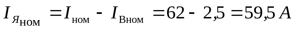 Рішення. Визначаємо номінальні струми кола збудження і якорі: